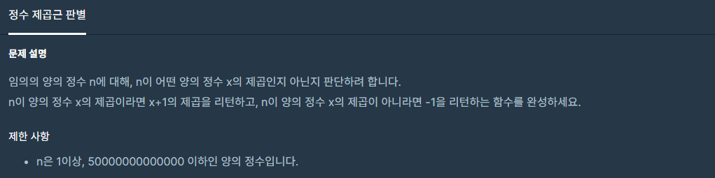 문제 : 정수 제곱근 판별
