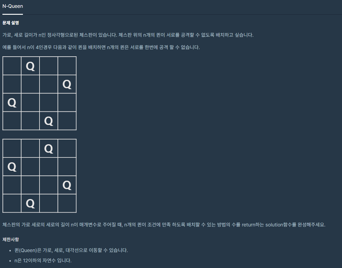 백준 - 단계별로 풀어보기 [9663] https://www.acmicpc.net/problem/9663 문제 풀이 N-Queen 문제는 백트래킹의 가장 대표적인 예제로서, 퀸의 특성상 체스판 한 행당 한 개의 퀸만 존재할 수 있다는 것을 전제..