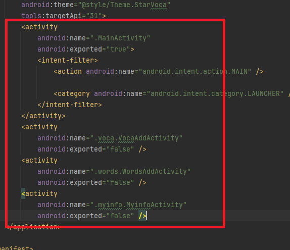 fragment와 달리 activity는 추가하면 manifest에 추가를 해야한다고 합니다.