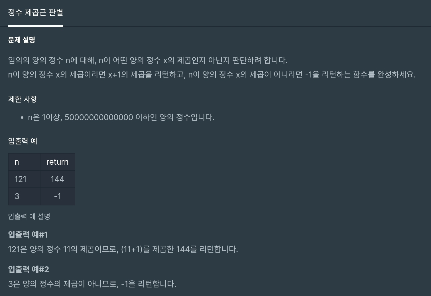 문제 : 정수 제곱근 판별