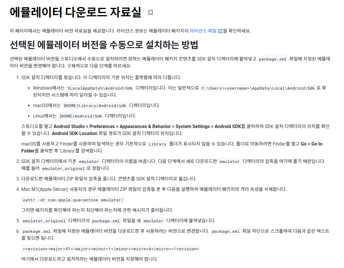 안드로이드 스튜디오 SDK 에뮬레이터 다운그레이드 방법