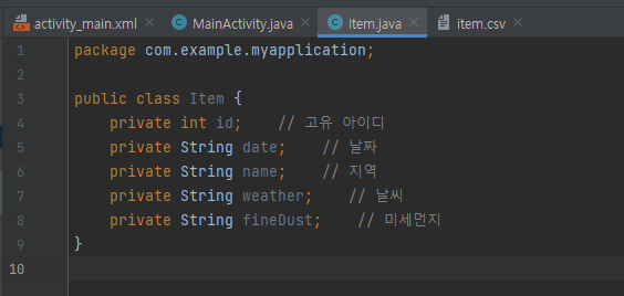 private List<Item> items = new ArrayList<Item>(); // csv 데이터를 이 리스트에 넣을거임