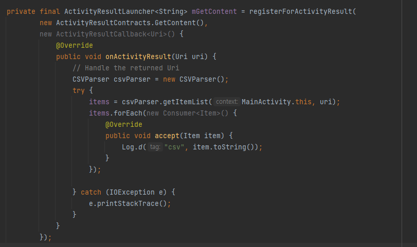 items = csvParser.getItemList(MainActivity.this, uri);