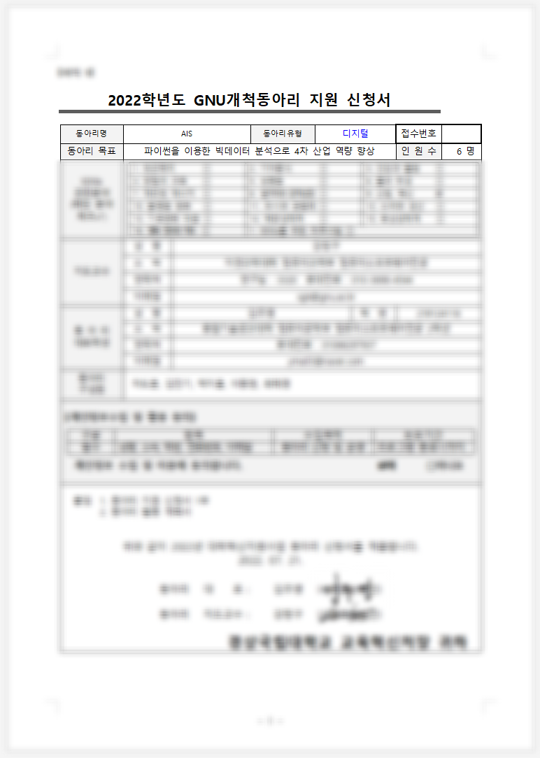 동아리 신청서를 내고