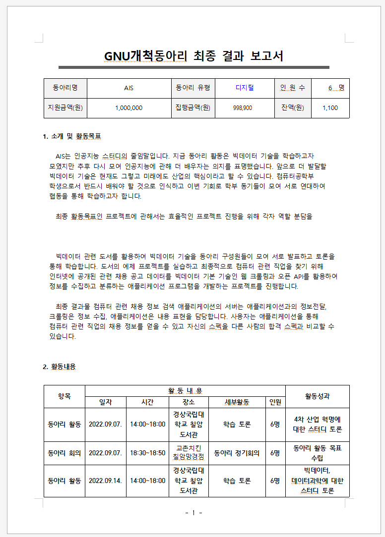 동아리 활동, 보고서 및 회의록 제작부터