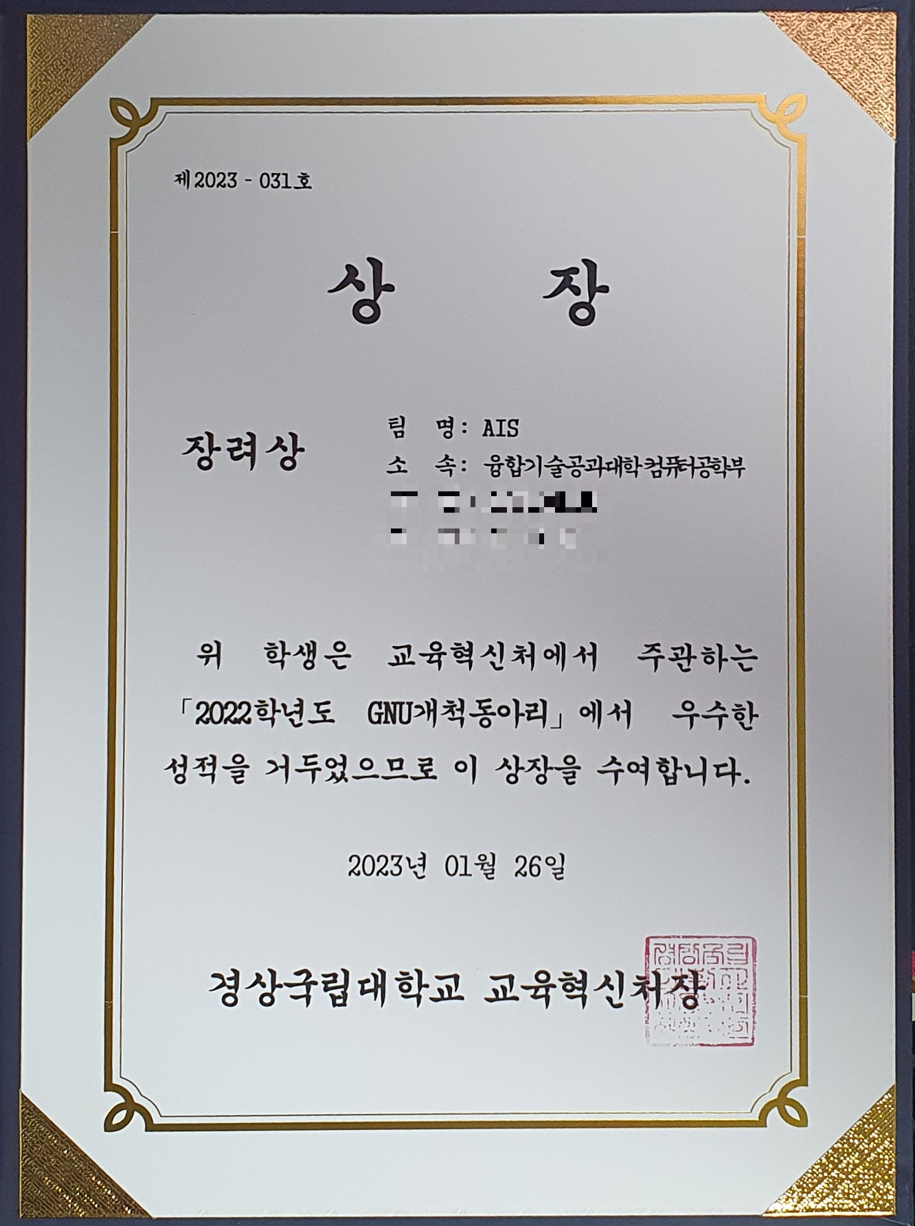 어찌 되었든간 우리 동아리는 장려상을 받았다