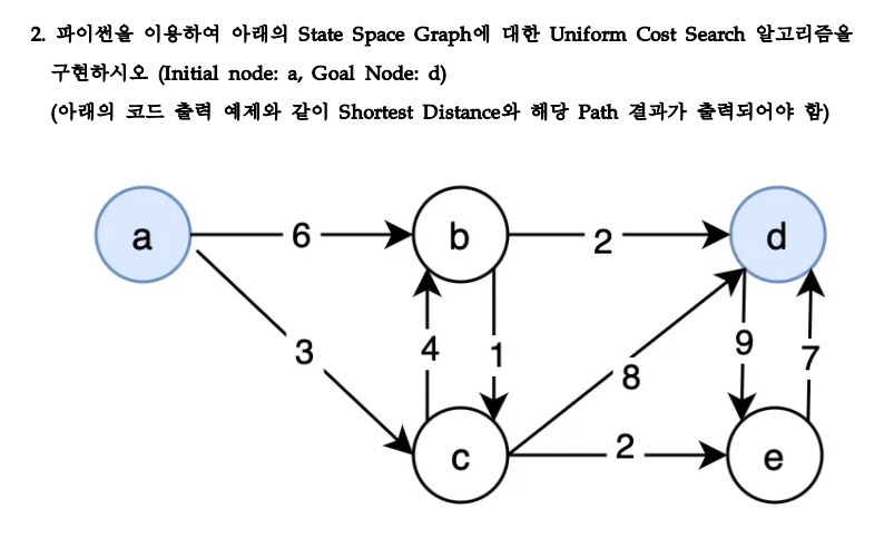 파이썬을 이용하여 아래의 State Space Graph에 대한 Uniform Cost Search 알고리즘을 구현하시오.