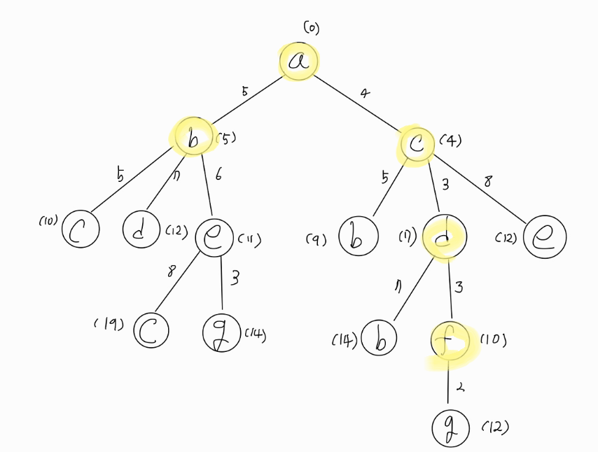그리고 D 노드를 가는데 C 노드를 통해서 가게 되었다면 A -> C -> D 즉 7이다.