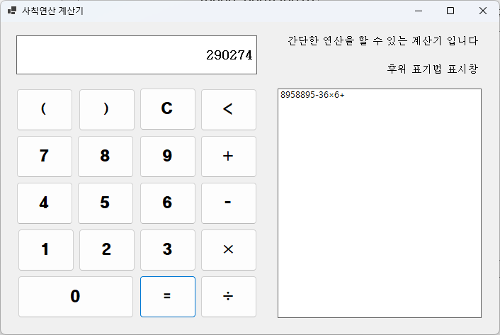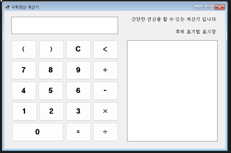 비주얼베이직 수업 시간에 했던 후위 표기법을 이용한 사칙연산 계산기 과제이다