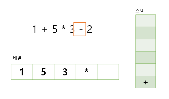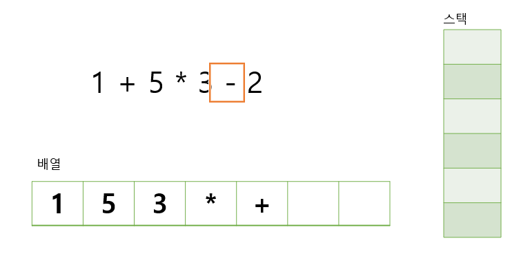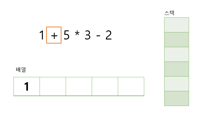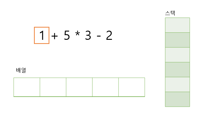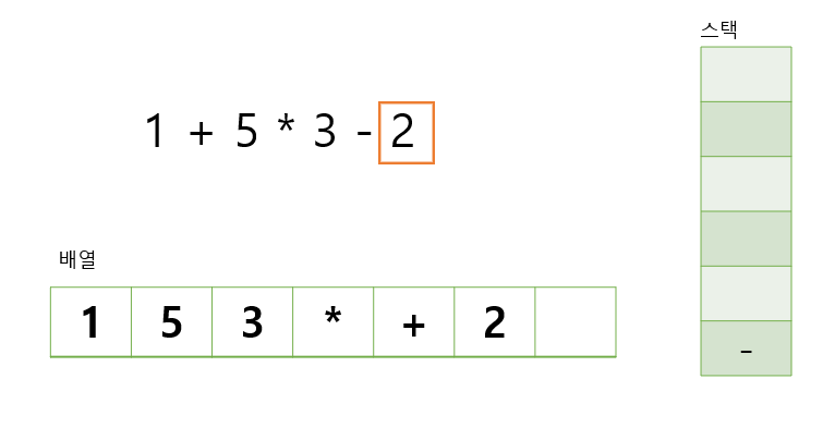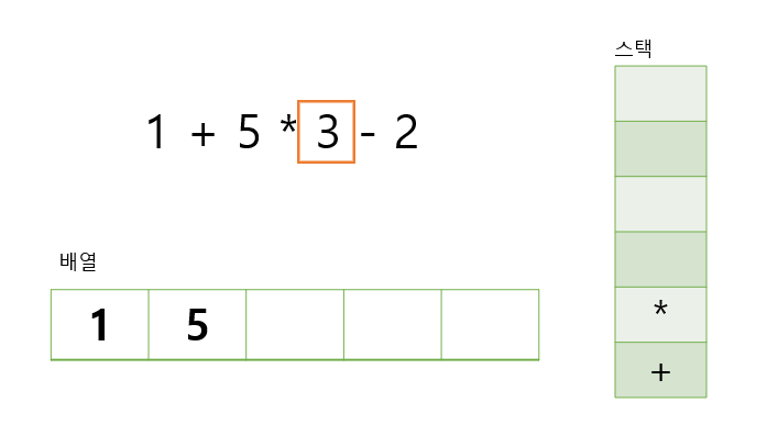 배열에는 숫자, 스택에는 연산자를 넣는다고 생각하면 된다
