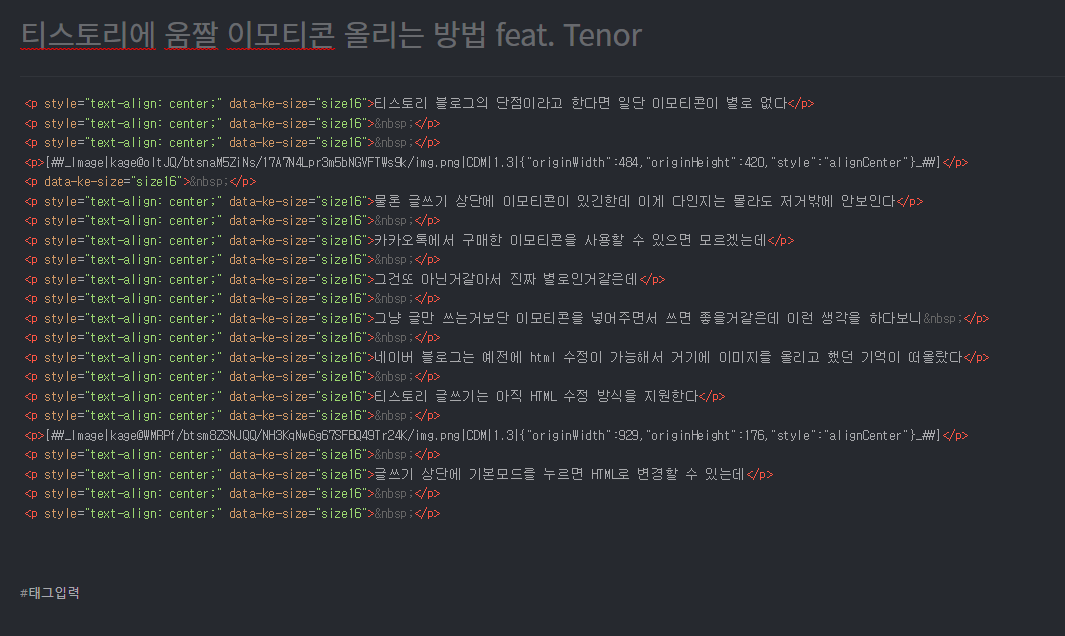 티스토리 글쓰기는 아직 HTML 수정 방식을 지원한다
