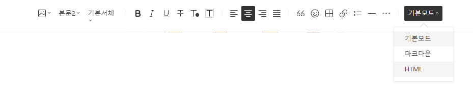 글쓰기 상단에 기본모드를 누르면 HTML로 변경할 수 있는데
