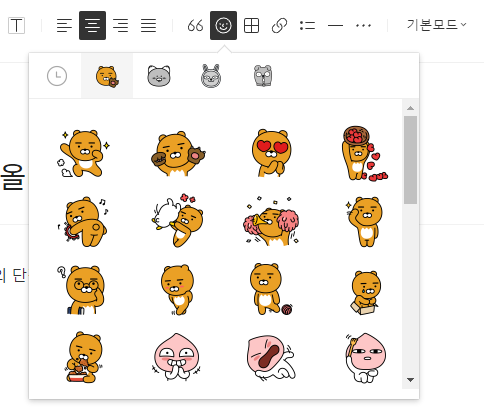 물론 글쓰기 상단에 이모티콘이 있긴한데 이게 다인지는 몰라도 저거밖에 안보인다