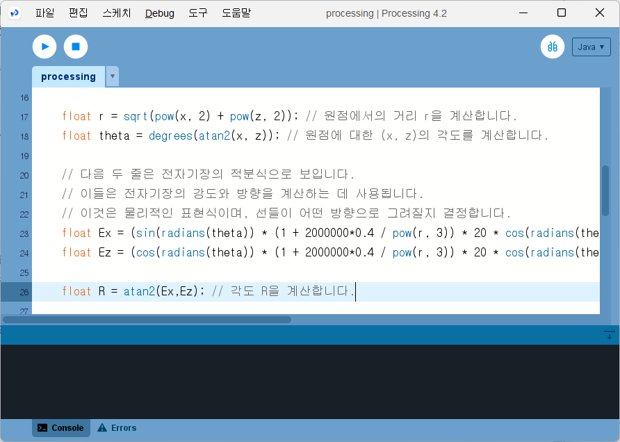 교과서의 자기장 방정식을 보고 코드에 넣었다고 했는데