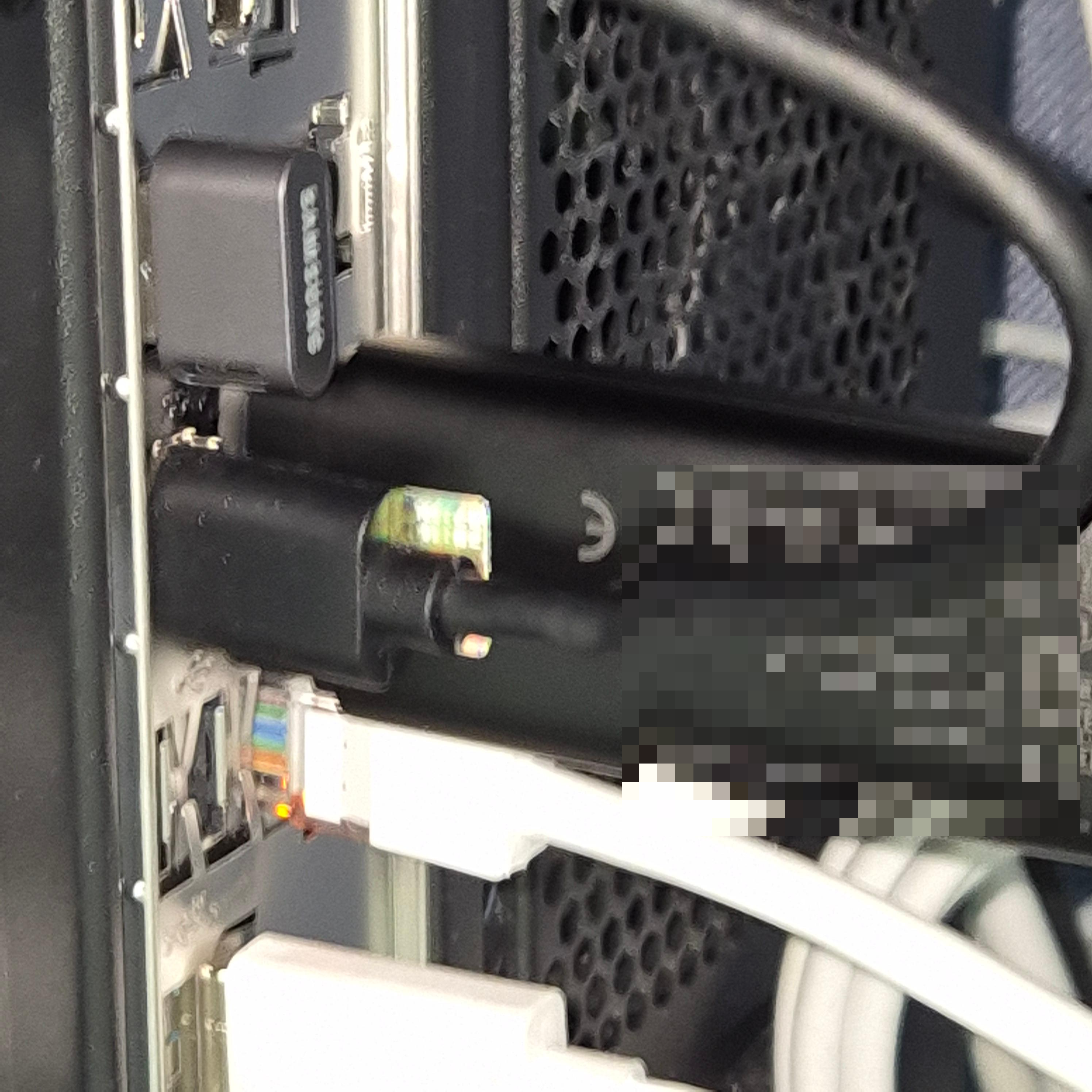 대각선으로 간섭 받지 않는 위치로 장착하면 위 사진처럼 됩니다. 안정적이죠. 지금 장착되어있는 포트가 USB 3.0? 3.1 포트인데, 지금 봤을 때는 간섭은 존재하지만 시스템상으로 크게 문제될것같지는 않습니다. 하지만, 이 상태가 계속되면 제품에 무리가 발생하겠죠, 그래서 저같은 사람은 불편해서 못씁니다.