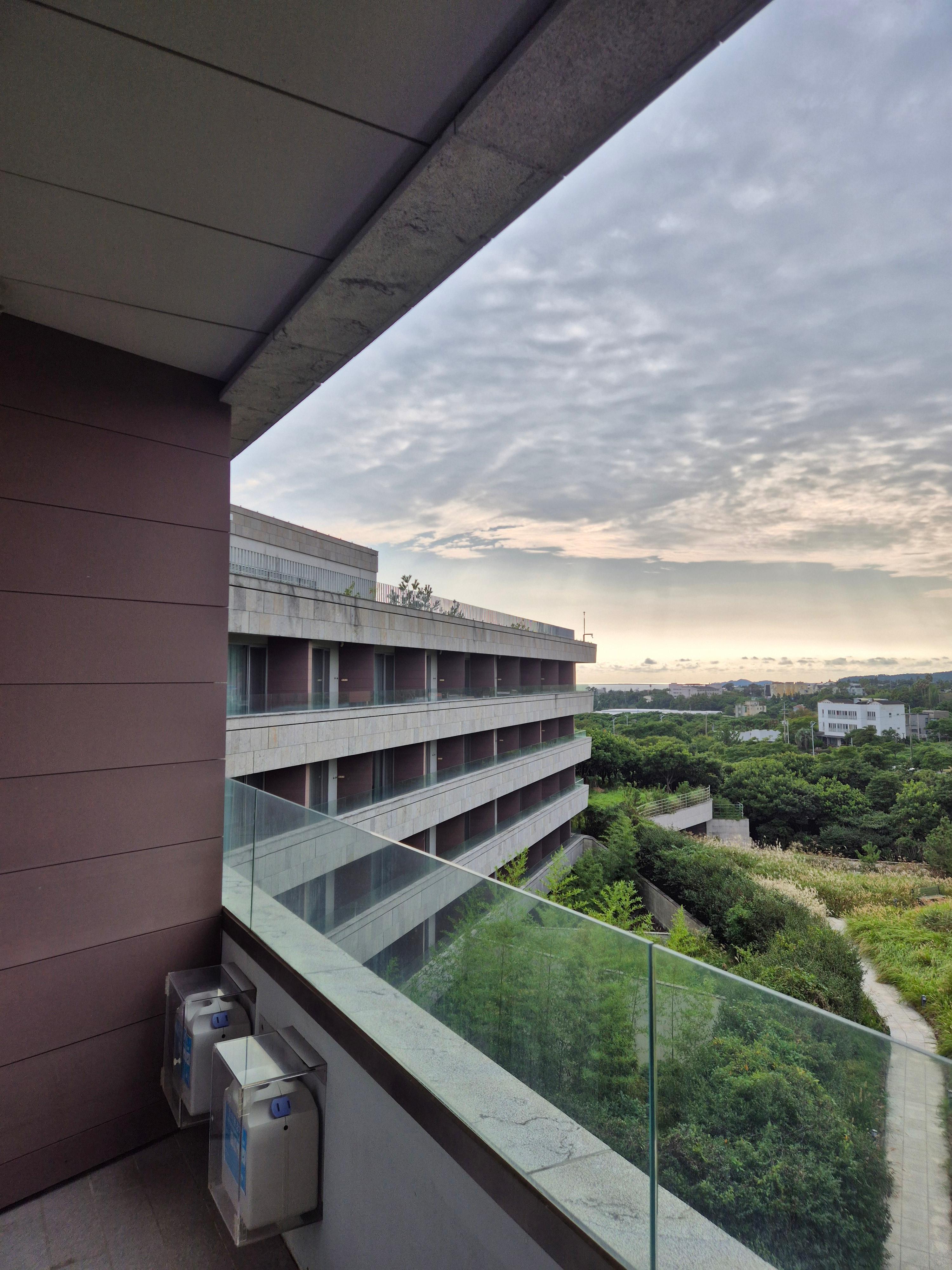 발코니 전망입니다. 객실에 발코니가 있는데 정원이 상쾌한 기분이 들고,
