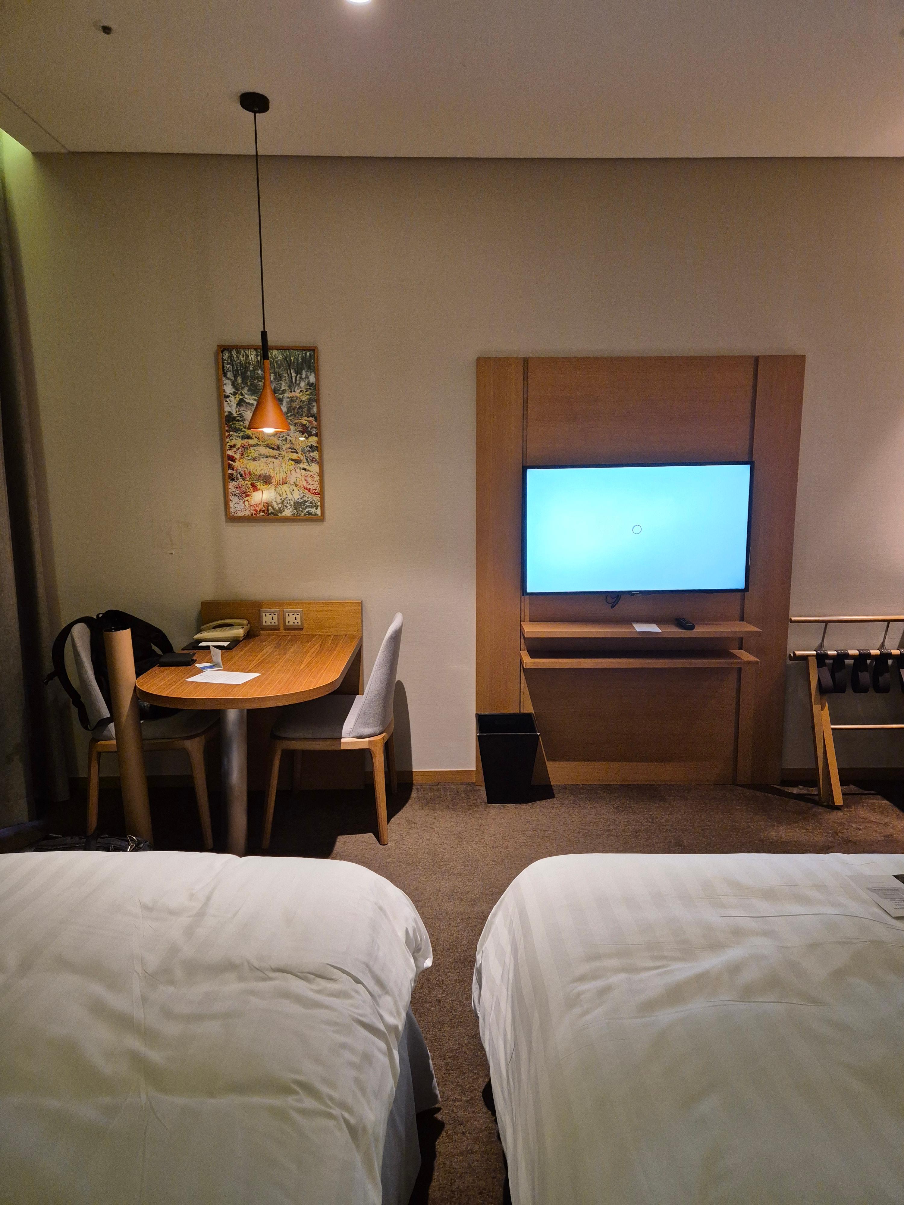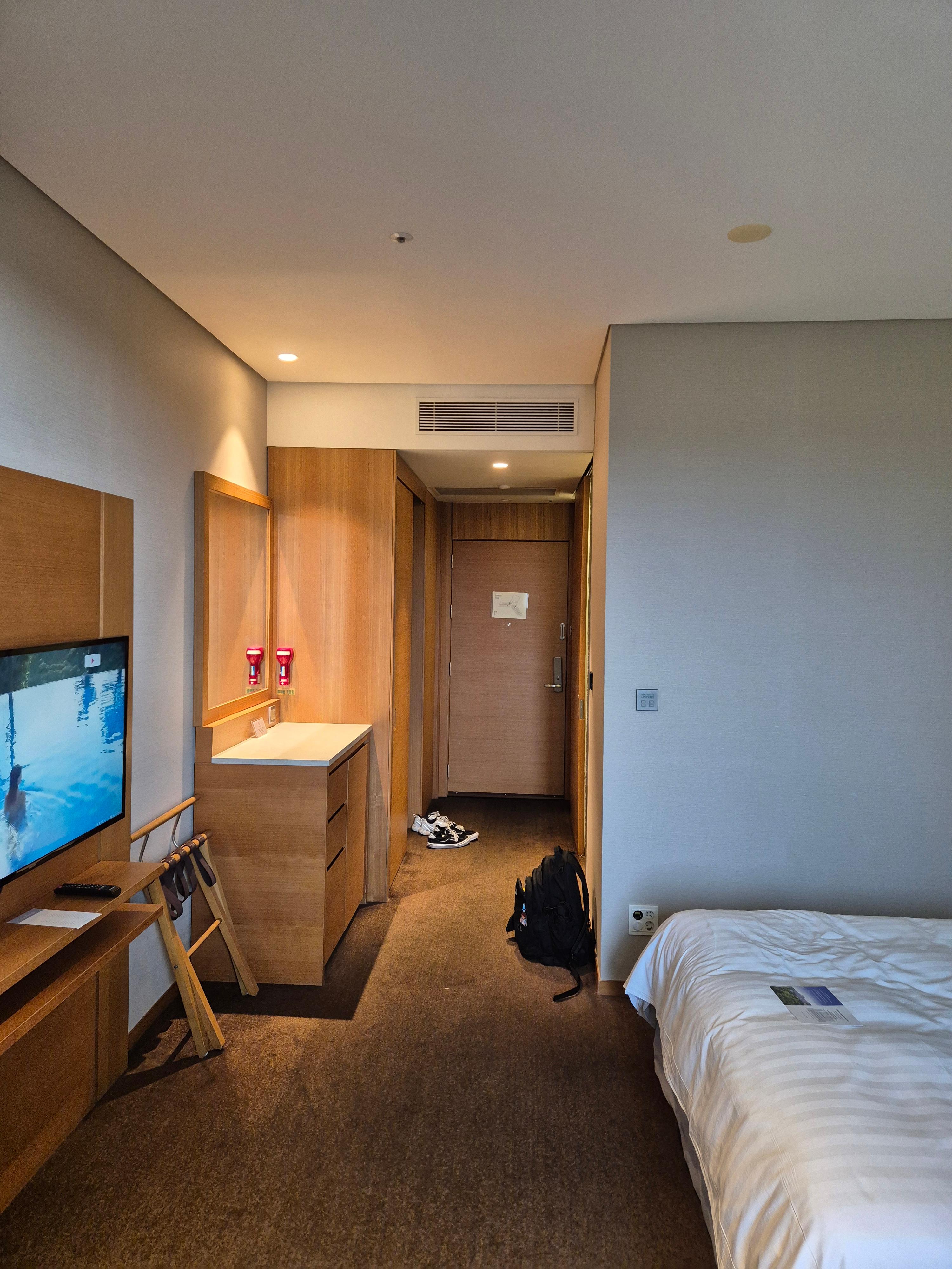 침대와 티비가 있는 벽면 사이의 공간은 꽤 있어서 방이 일반적인 다른 호텔 보다는 넓다고 생각하고