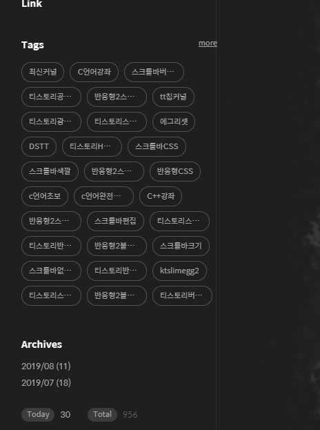 | [티스토리 스킨 만들기] 반응형 2 스킨 사이드, 카테고리 스크롤 바 없애기, 수정하기 (1) | 2019.08.25 |