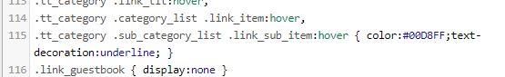 color:를 수정하면 카테고리 목록의 색깔이 수정되고 height를 수정하면 높이가 수정되죠