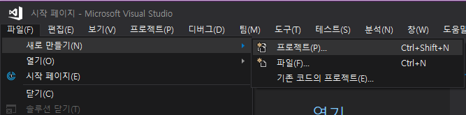 파일 -> 새로 만들기 -> 프로젝트 클릭
