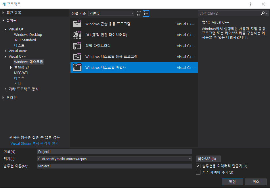 2. 비쥬얼스튜디오 프로젝트 생성