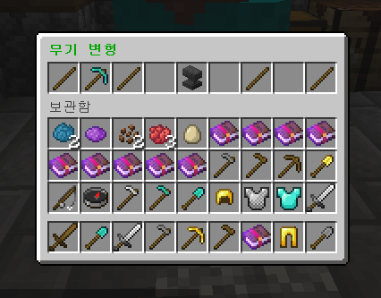 인벤토리를 닫을 때 이름이 무기변형이면 임시변수들에게 각 아이템을 설정하고 공기가 아니면 플레이어에게 준다