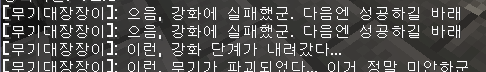 message "[무기대장장이]: 이런, 강화 단계가 내려갔다..." to player