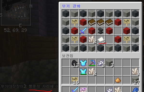 message "[무기대장장이]: 행운석 자리에 이상한걸 넣었군" to player