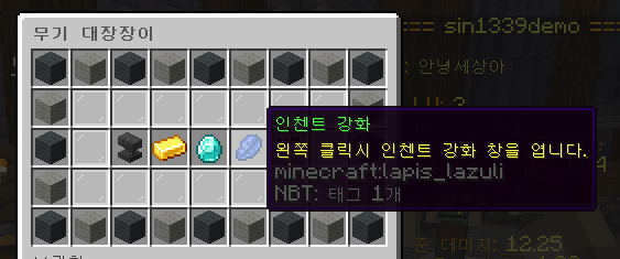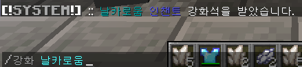 먼저 명령어로 날카로움 인챈트 강화석을 얻어줍니다.